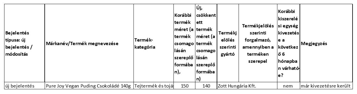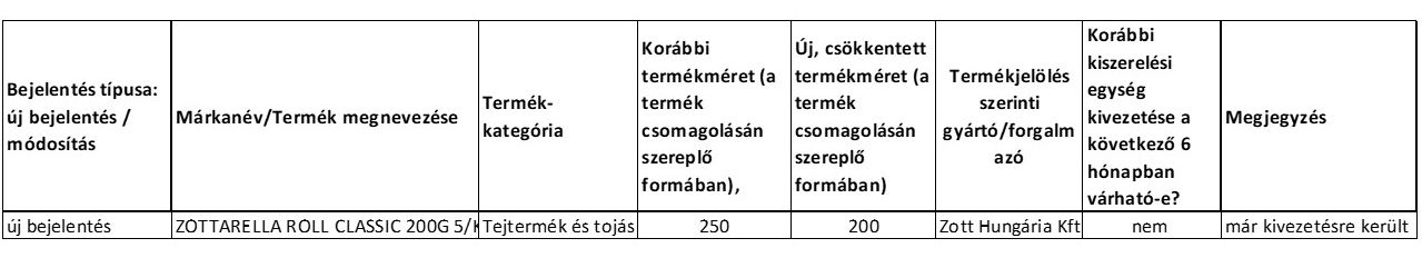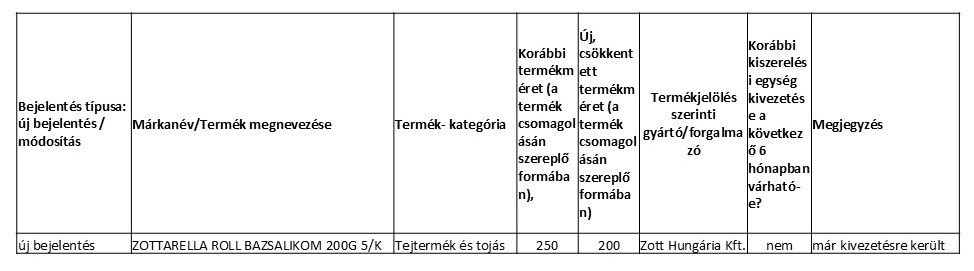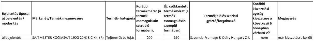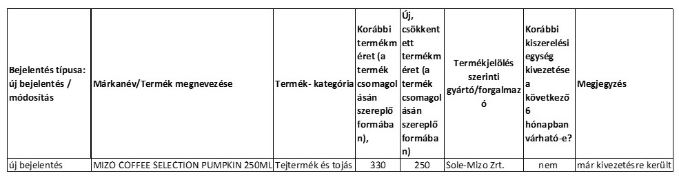 Tájékoztatás kiszerelés csökkenésről